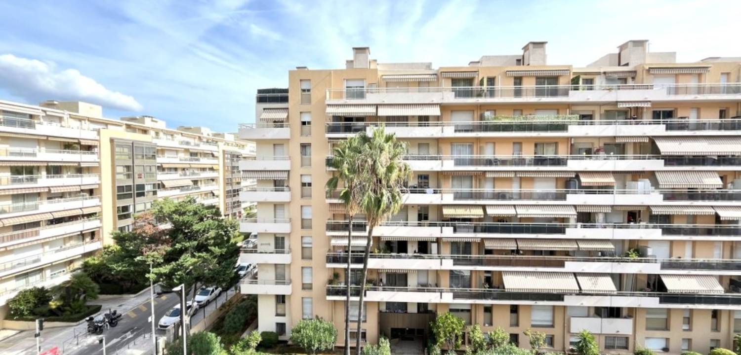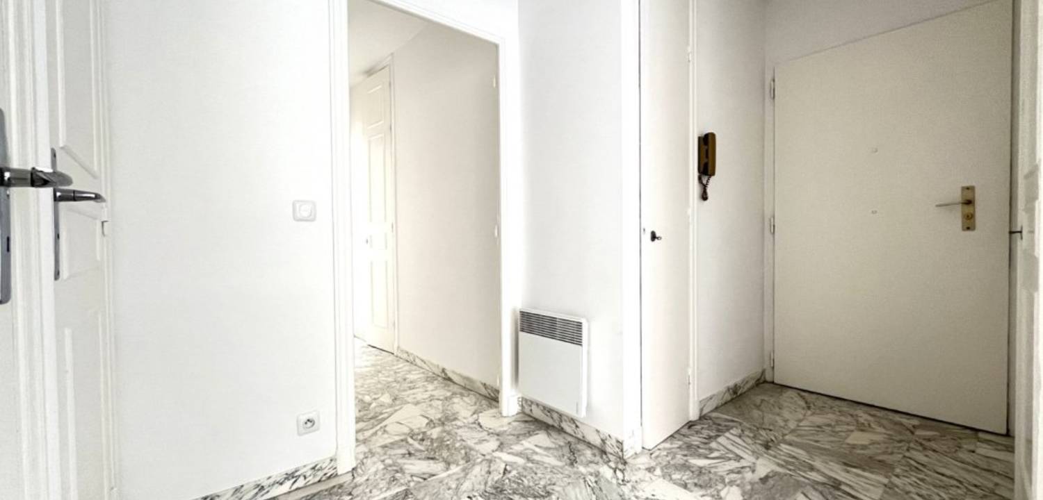 NICE NORD - Rue Jean Canavèse - Appartement 2 pièces traversant au 5ème étage avec ascenseur de 53 m², il se compose d'une entée avec rangements, d'un séjour lumineux avec terrasse, d'une cuisine indépendante aménagée, d'une chambre donnant sur cour au calme, d'une salle de bains, d'un dressing, d'un wc indépendant