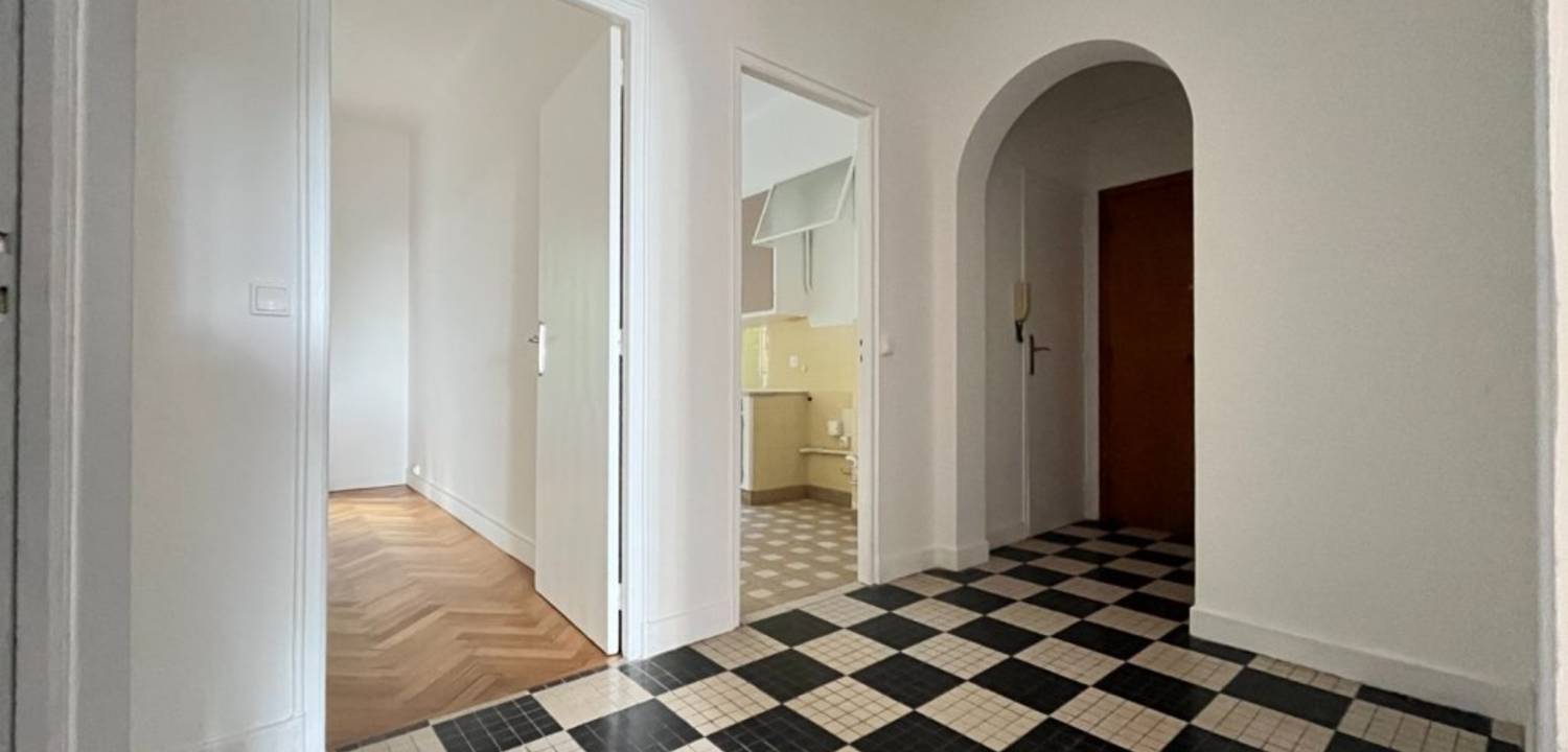 NICE MUSICIENS/GUIGLIA Situé au 1er étage avec ascenseur d' une résidence calme, ce spacieux 2 pièces de 57 m² dispose : Une entrée spacieuse avec placard intégré, il est traversant, une belle hauteur sous plafond, apportant du cachet et une sensation d'espace