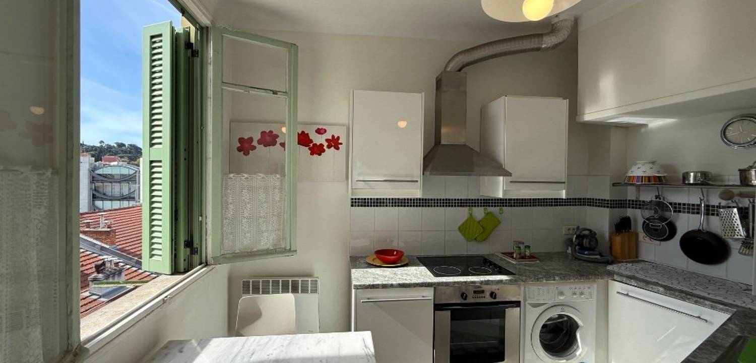 Situé au dernier étage d'un immeuble typique niçois, cet appartement de 2 pièces de 34 m² vous offre une qualité de vie incomparable, au cœur d'un quartier calme et recherché de Nice