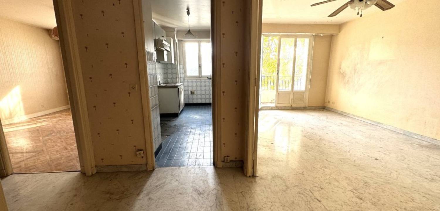 Le séjour donne sur un petit extérieur très ensoleillé. La cuisine indépendante pourrait s'ouvrir sur le séjour. Chambre avec parquets d'origine. Salle de bains et WC indépendants. Prévoir rafraichissement. Proposé avec une cave et un parking extérieur privatif dans la résidence.