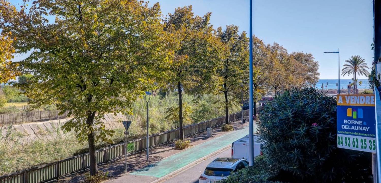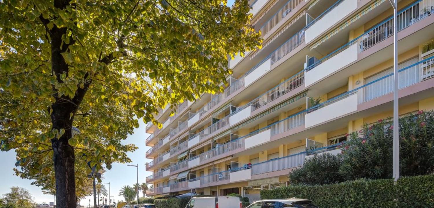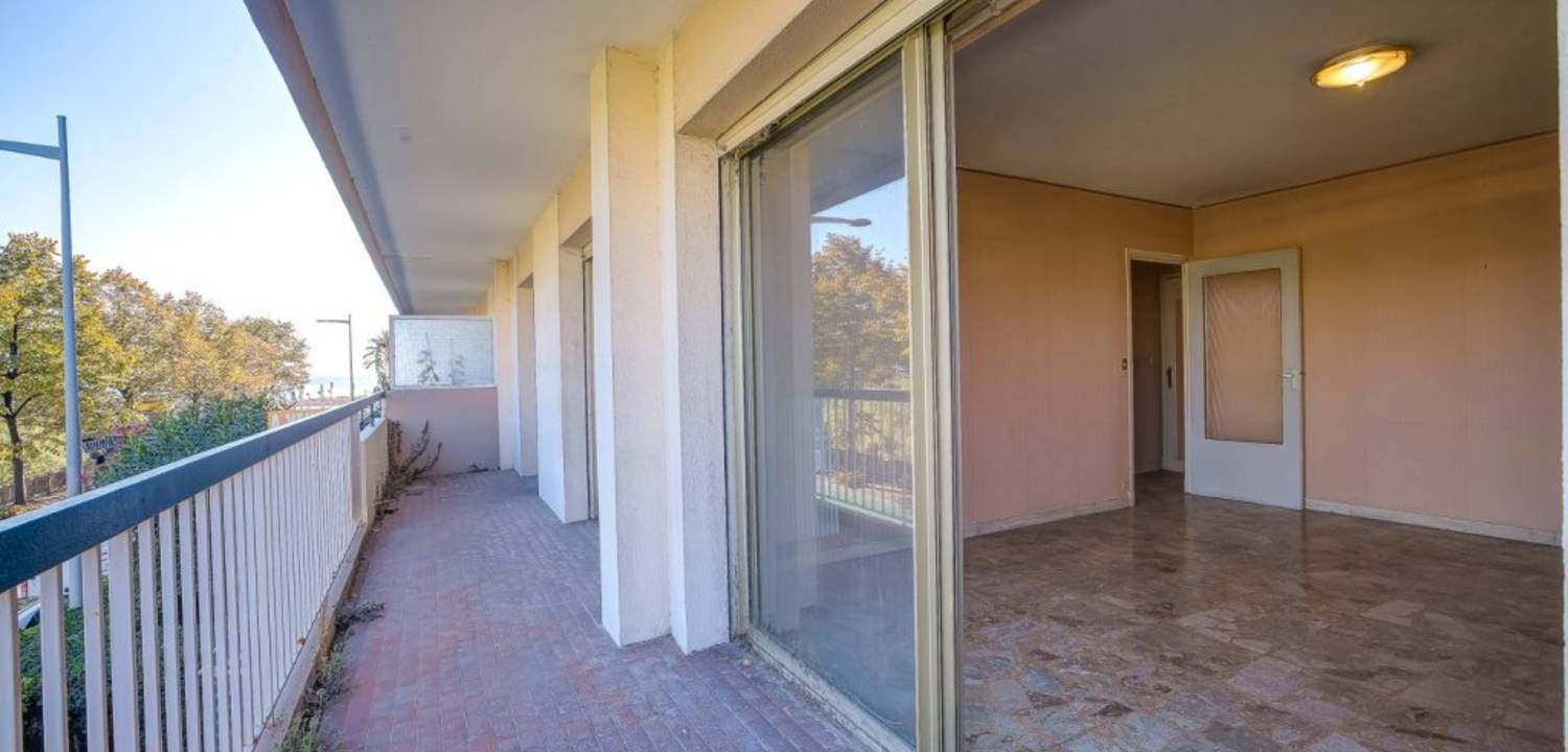 Belle opportunité pour ce 3 pièces traversant à rénover, idéalement situé au 1er étage d'une copropriété de très bon standing à 50m du bord de mer et face au parc de la Méditerranée sur un axe très peu passant