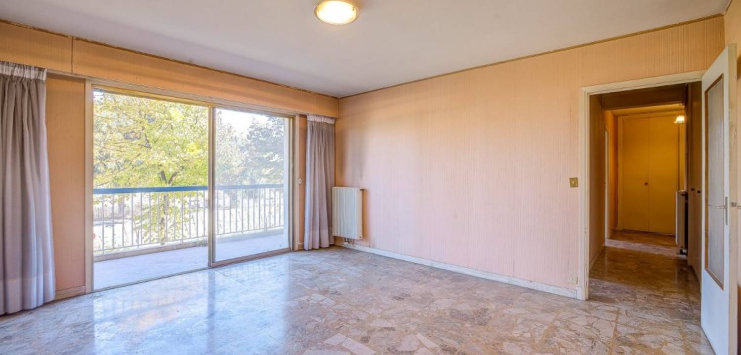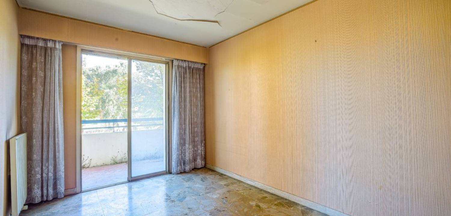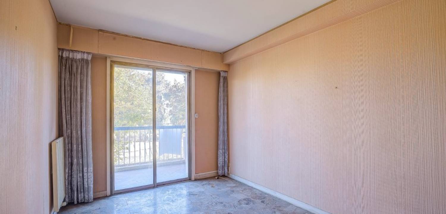 Belle opportunité pour ce 3 pièces traversant à rénover, idéalement situé au 1er étage d'une copropriété de très bon standing à 50m du bord de mer et face au parc de la Méditerranée sur un axe très peu passant