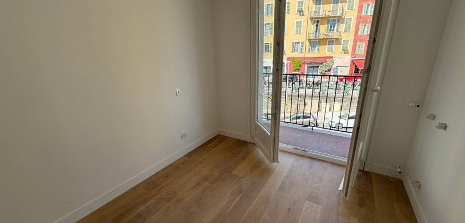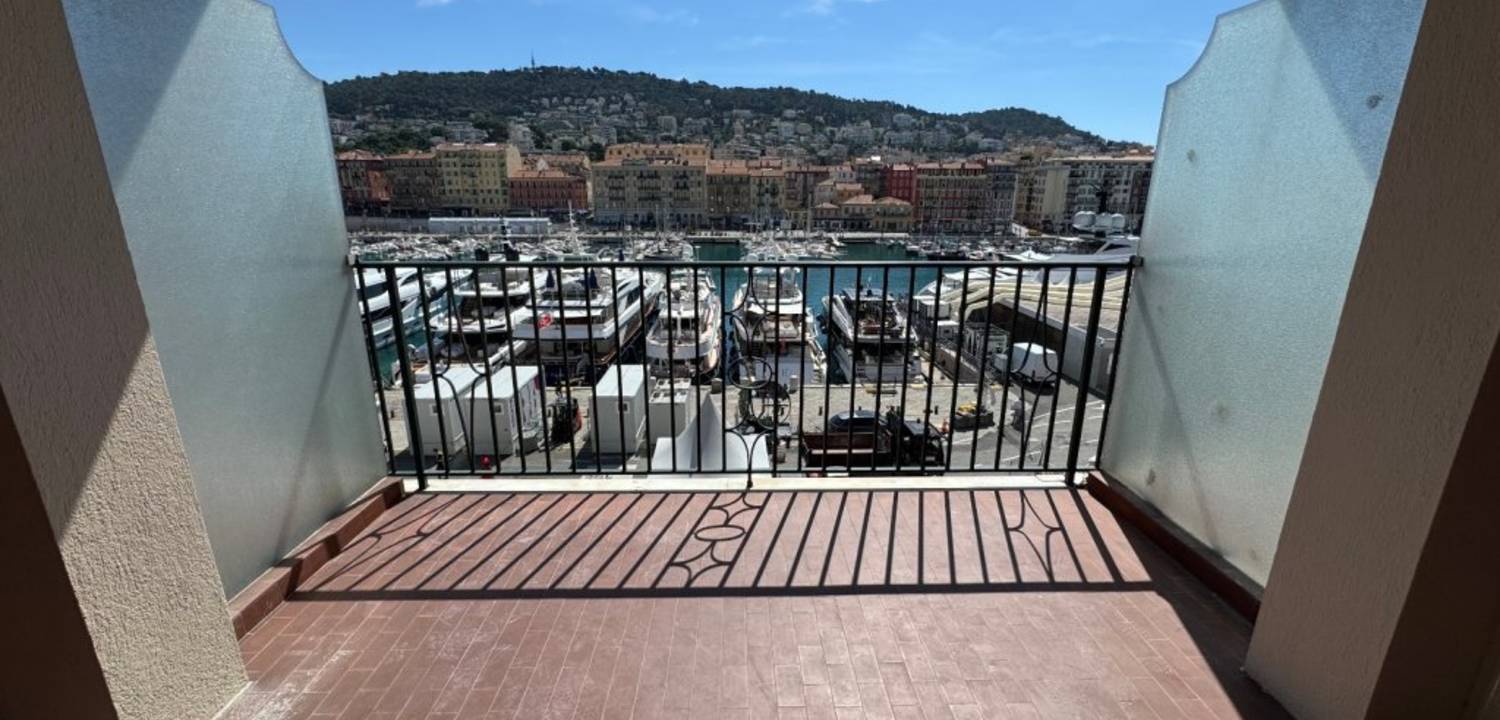 La cuisine avec verrière est ouverte sur le séjour qui offre une profonde terrasse avec une vue panoramique sur le Port de Nice et sur la colline du Château. 2 chambres avec chacune sa salle d'eau et un balcon. Climatisation, marbre et parquets. Proposé avec une cave. Possibilité d'achat d'un stationnement en sus. Ref 1020.