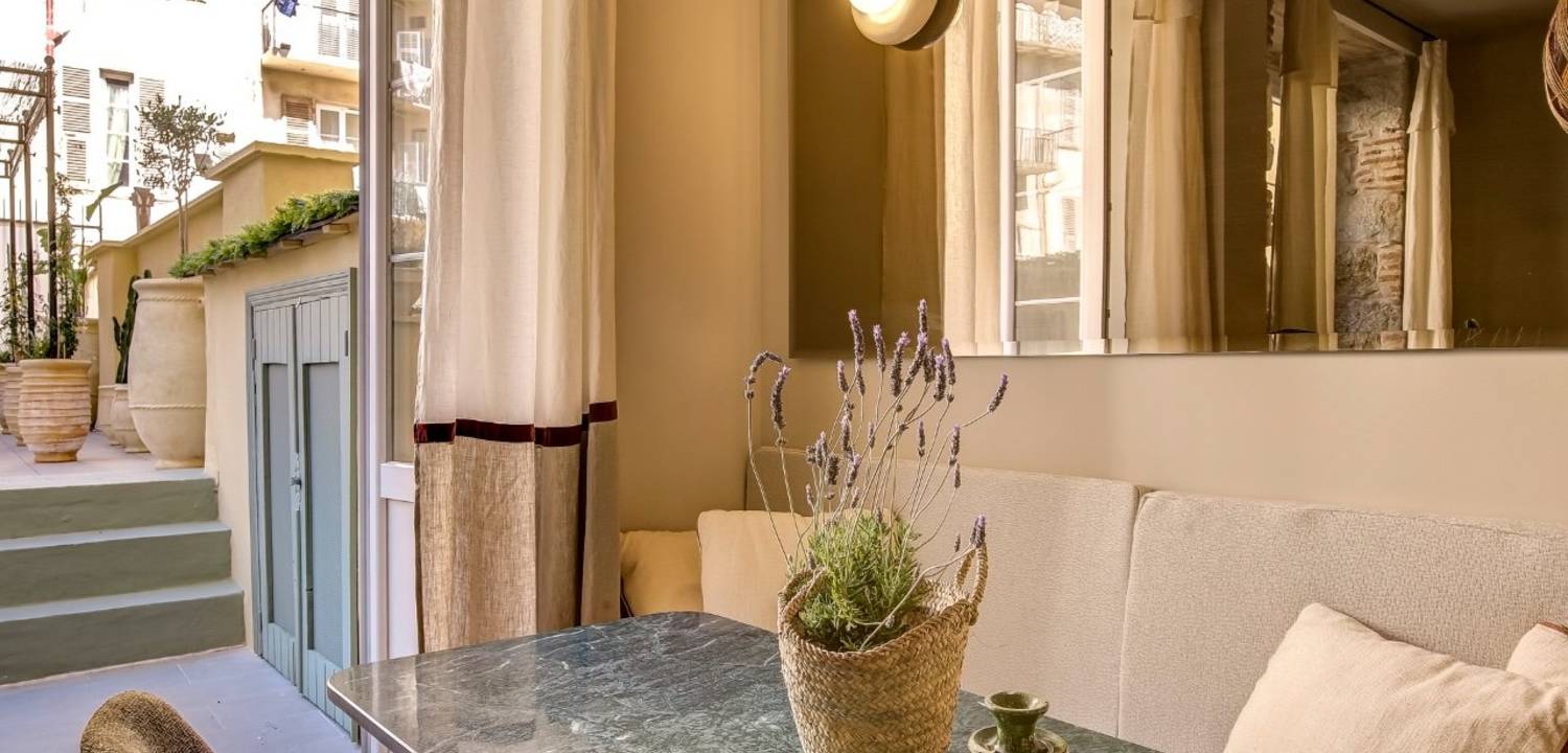 La rénovation a su préserver les éléments d'origine tels que la pierre, les poutres et la belle hauteur sous plafond. Le séjour s'ouvre sur une terrasse de plus de 50 m² donnant sur cour, offrant un espace extérieur appréciable et au calme. L'appartement comprend trois chambres, deux salles de bains, des toilettes invités ainsi qu'une buanderie, avec une distribution fonctionnelle adaptée à une vie de famille. Un bien rare par sa surface extérieure et son emplacement central.