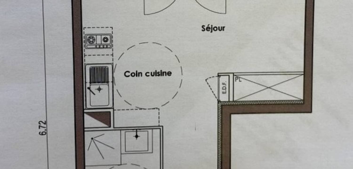 Composé d'un séjour avec cuisine américaine, salle douches, rangements. Vendu avec un parking fermé. Actuellement loué 550€.