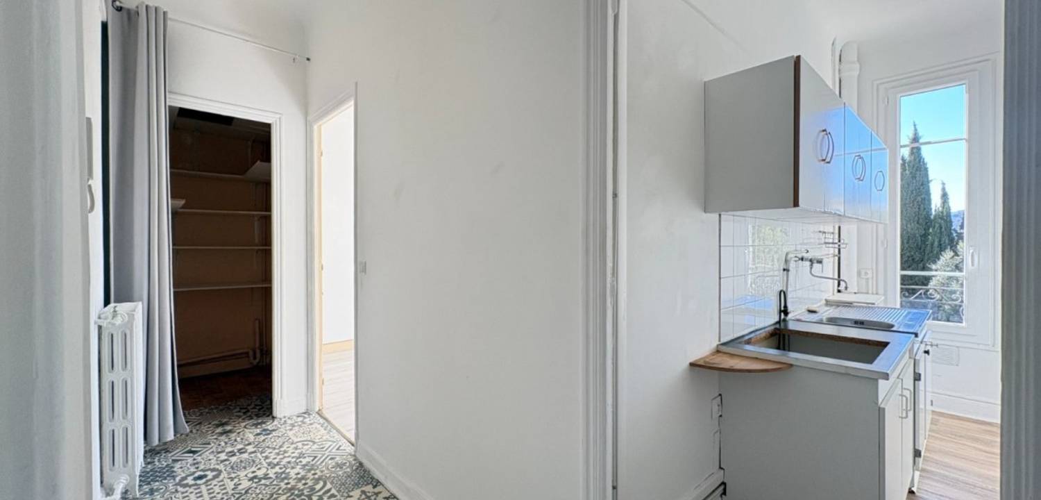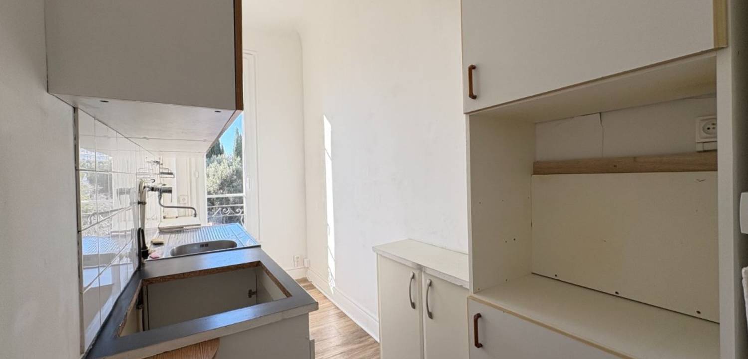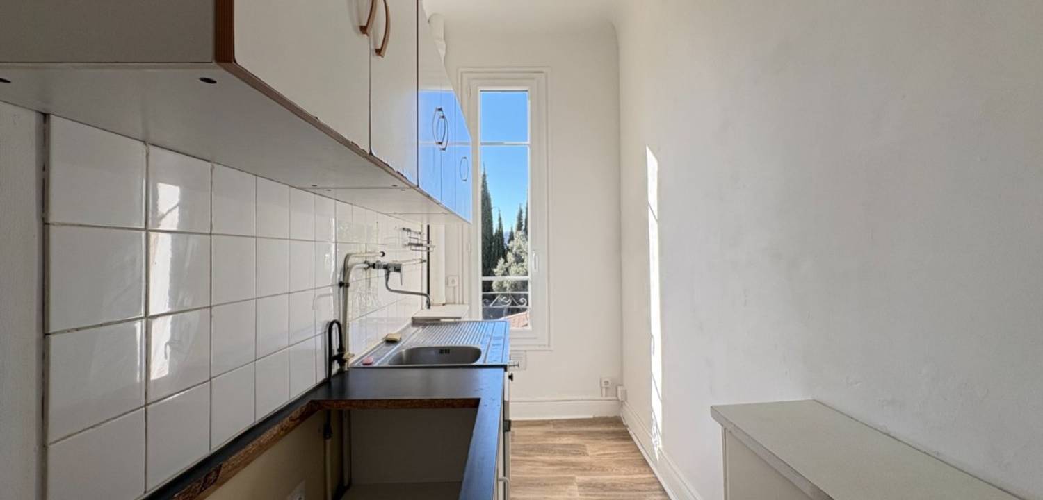 Avenue Bellanda, en plein cœur de Cimiez, découvrez ce type 2 loué nu, comprenant une entrée, un salon donnant sur un balcon, une cuisine, ainsi qu'une chambre avec salle d'eau donnant également sur un balcon