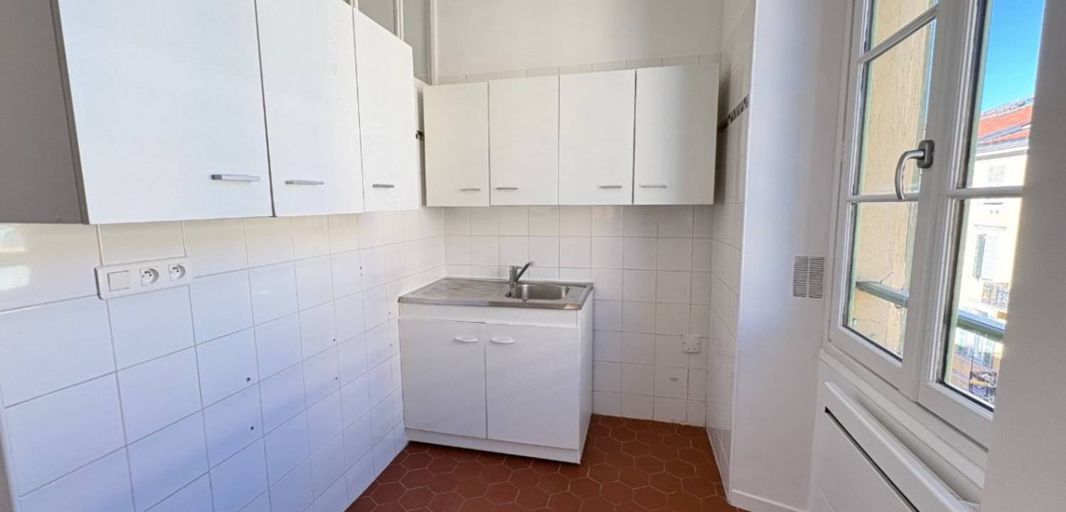 Dans le quartier du port à quelques minutes de la place Garibaldi, 2 pièces rénové au 4e étage d'un immeuble niçois, offrant pièce principale avec coin cuisine, une tres grande chambre
