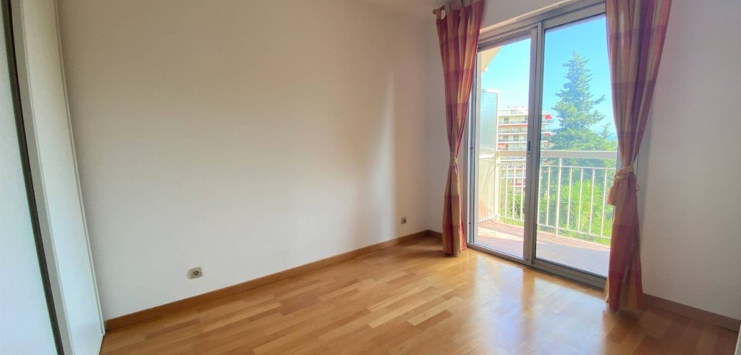 Nice Fabron, dans une petite copropriété de 3 étages, au calme absolu, appartement 2p de 50m2 offrant un séjour donnant sur une petite terrasse avec vue mer, cuisine aménagée, une chambre donnant sur un balcon, disposant de deux grandes armoires murales, salle de bains, wc séparés