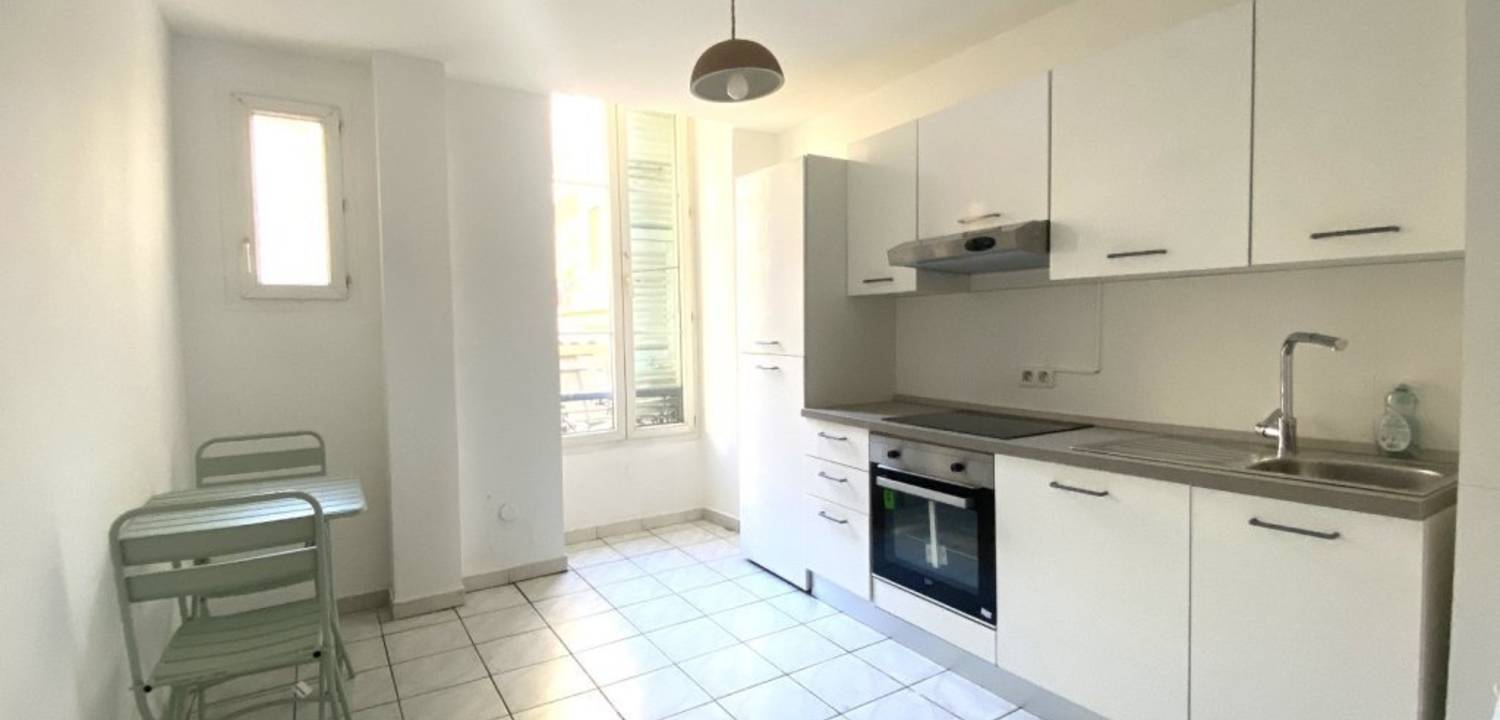 Jean Medecin / rue d'Italie au 1er étage d'un immeuble niçois très bien entretenu, appartement 3p meublé, entièrement rénové, offrant une belle hauteur sous plafond, double vitrage, traversant, grande cuisine séparée, les 2 chambres donnent au calme absolu, salle de bains, wc séparés