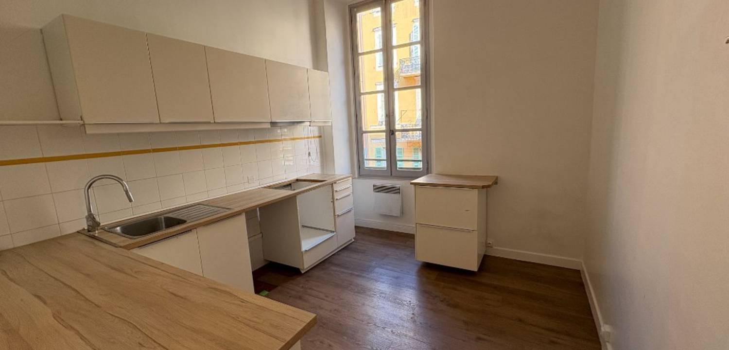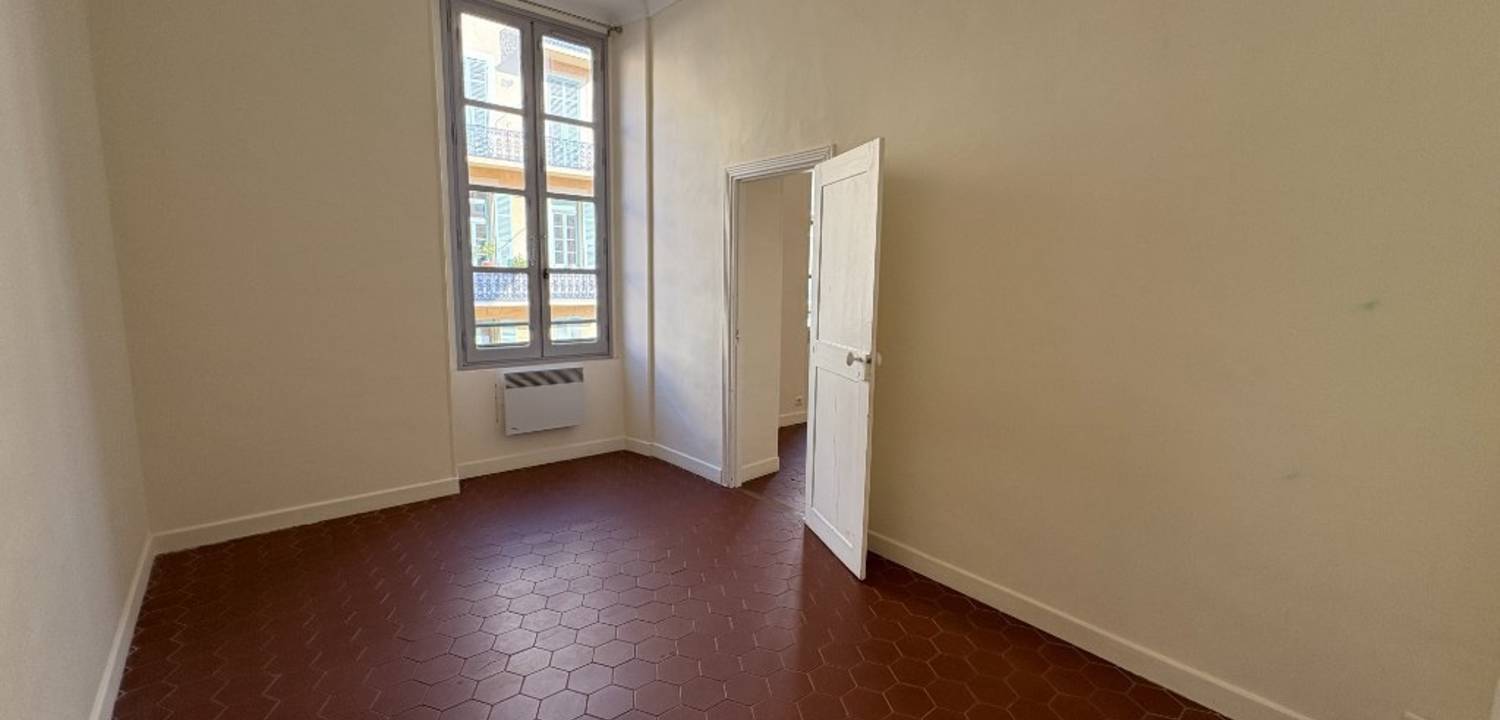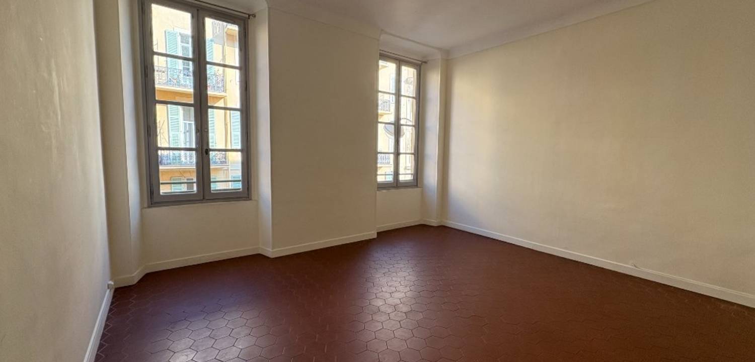 NICE Quartier du Port rue Fodéré au 2e etage d'un immeuble niçois appartement 3p avec belles hauteurs sous plafonds tomettes au sol, grande cuisine aménagée, double séjour, deux chambres