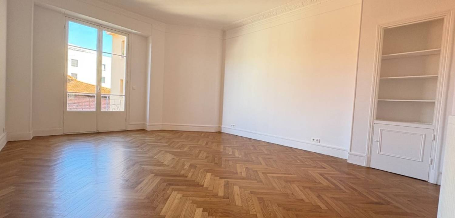 Dans copropriété de qualité, l'Azur Palace ,vaste 3 pièces de 95 m2 traversant au 4ème étage, entièrement rénové et idéalement situé proche de la mer, parquet, moulures, petit balcon sur cuisine, chauffage collectif, cave, disponible immédiatement. N'attendez pas ! Merci de prendre contact avec Vincent au 07.62.86.11.63 ou vincent@borne-delaunay.com