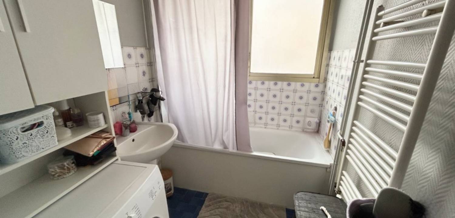 Appartement 2 pièces en étage avec ascenseur. Composé, hall, séjour, cuisine indépendante, 1 chambre, salle de bains avec fenêtre, terrasse exposée sud. Vendu avec un parking fermé et une cave.