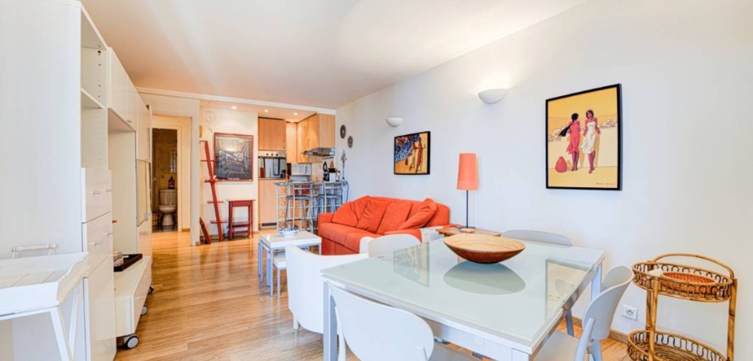 Situé à deux pas de la mythique Promenade des Anglais, l'appartement bénéficie d'un accès direct à la Baie des Anges, bordée de palmiers et des célèbres chaises bleues emblématiques de Nice. Vous êtes à proximité direct des commerces et services de proximité ainsi que du tram qui vous permettra de vous déplacer de l'aéroport au centre-ville. Il se compose d'une entrée desservant une buanderie, un séjour avec cuisine américaine, une salle d'eau avec wc, une chambre et un wc séparé. Vous profiterez également d'une agréable terrasse donnant un point de vue exceptionnelle sur la mer. L'appartement est vendu avec un garage en option de 12m2.