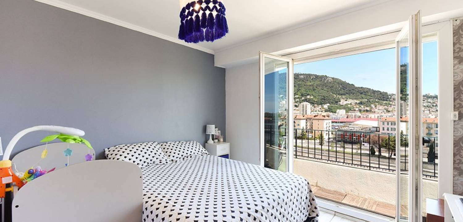Nice Lyautey, à l'avant dernier étage d'une résidence de standing gardiennée, lumineux 2P de 48 m² offrant une jolie terrasse avec une vue très dégagée à l'est