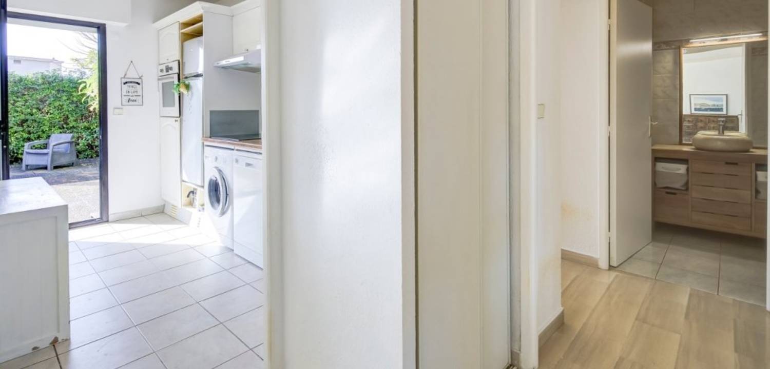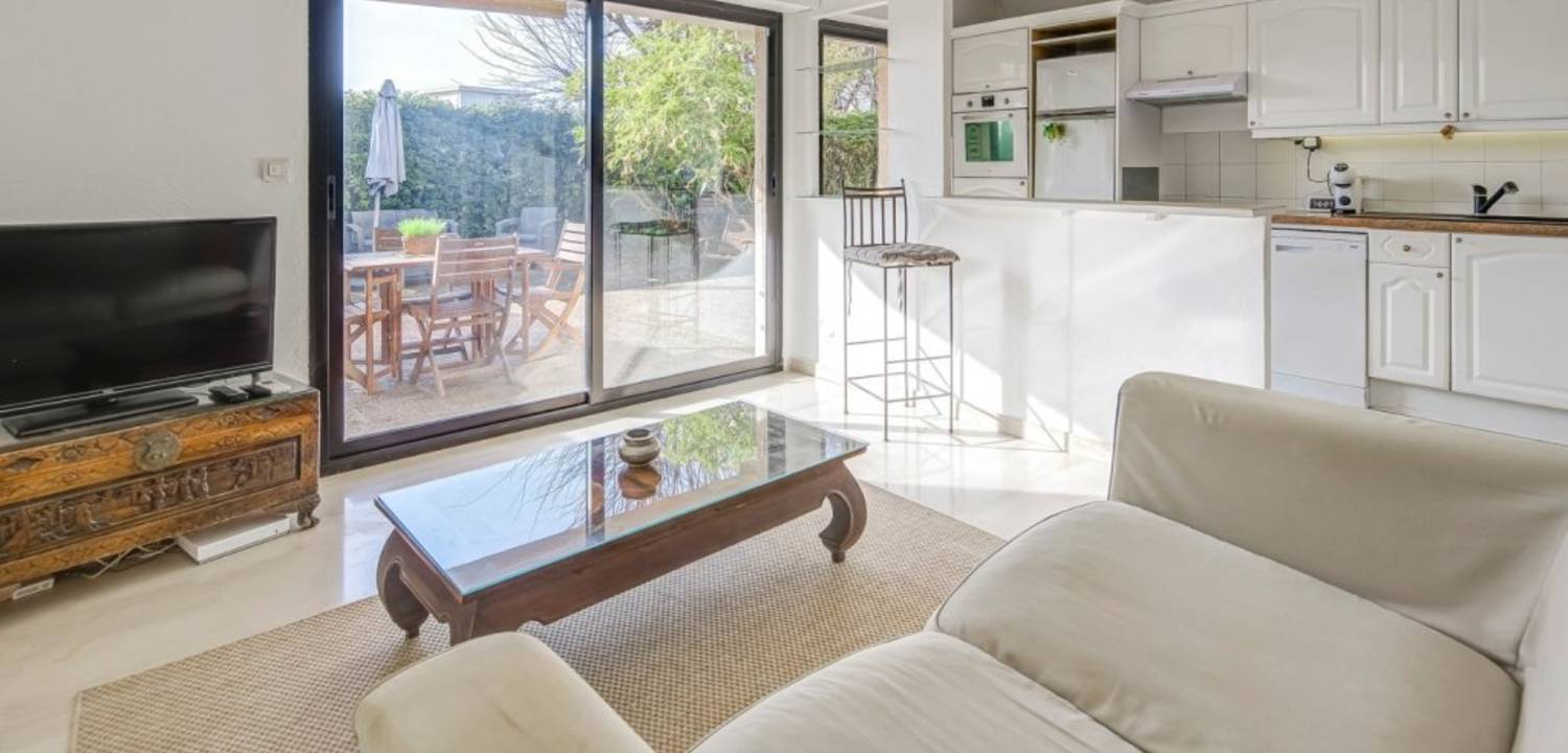 L'espace de vie est fluide et fonctionnel : un salon lumineux et une chambre s'ouvrent directement sur une terrasse et un jardin privatifs de 70 m², parfaitement orientés pour profiter des heures d'ensoleillement. La cuisine américaine, équipée, prolonge naturellement le séjour et facilite la vie quotidienne et les réceptions informelles. La disposition permet une circulation agréable entre les pièces et une belle relation intérieur/extérieur. Salle de bains et WC séparés. Dressing et climatisation. Vendu avec une cave et un grand garage privatif dans la résidence. DPE C.