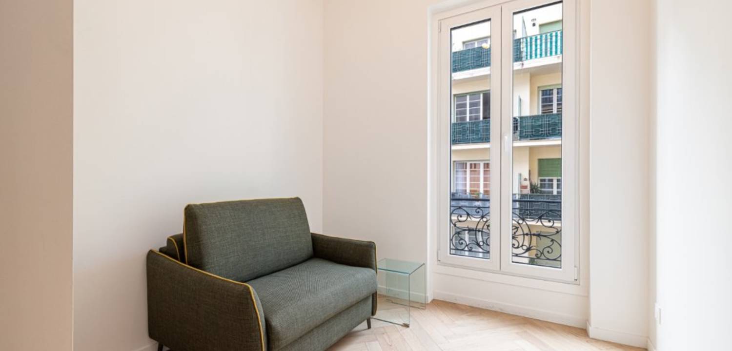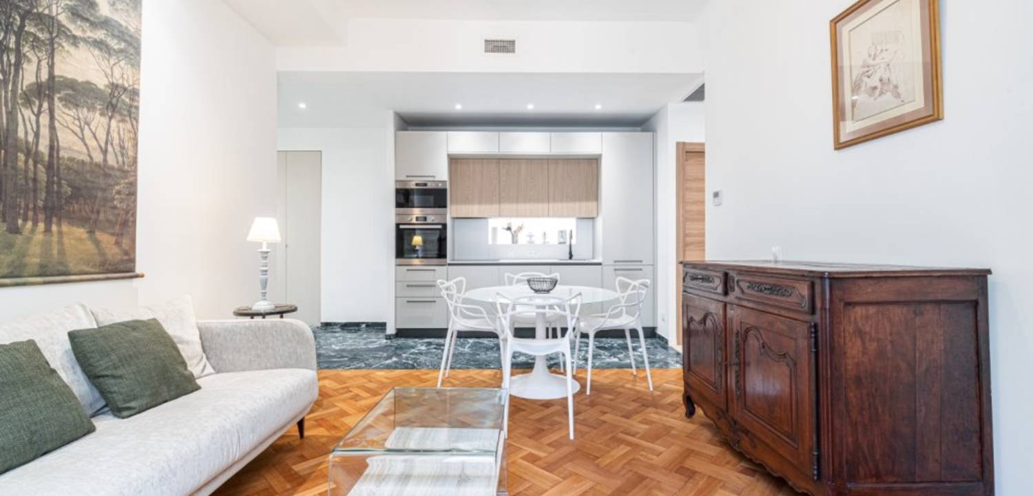 Cet appartement entierment rénové avec des matériaux de qualité, comme le double vitrage, la climatisation gainable, vous offrira un maximum de confort. Ce 3 pièces se compose d'une entrée avec placard, de deux chambres, d'une cuisine ouverte sur un séjour lumineux, d'une salle d'eau spacieuse et d'un WC indépendant. Sa situation géographie vous permet d'être proche des commodités, à 10 min à pied de la place Massena, 10 min du vieux Nice et de la promenade des Anglais. - Discover this superb apartment located on the 2nd floor of a beautiful condominium in the heart of Nice. This apartment has been fully renovated with quality materials, such as double glazing and ducted air conditioning, to offer you maximum comfort. This 3-room apartment comprises an entrance hall with cupboard, two bedrooms, a kitchen opening onto a bright living room, a spacious shower room and a separate toilet. Its location means you're close to all amenities, just a 10-minute walk from Place Massena and 10 minutes from the old town and the Promenade des Anglais.