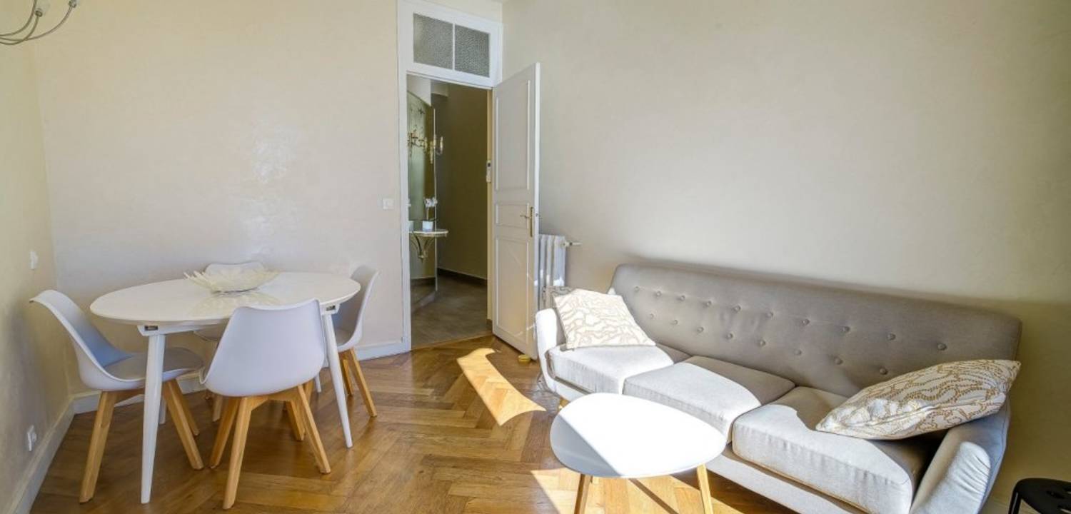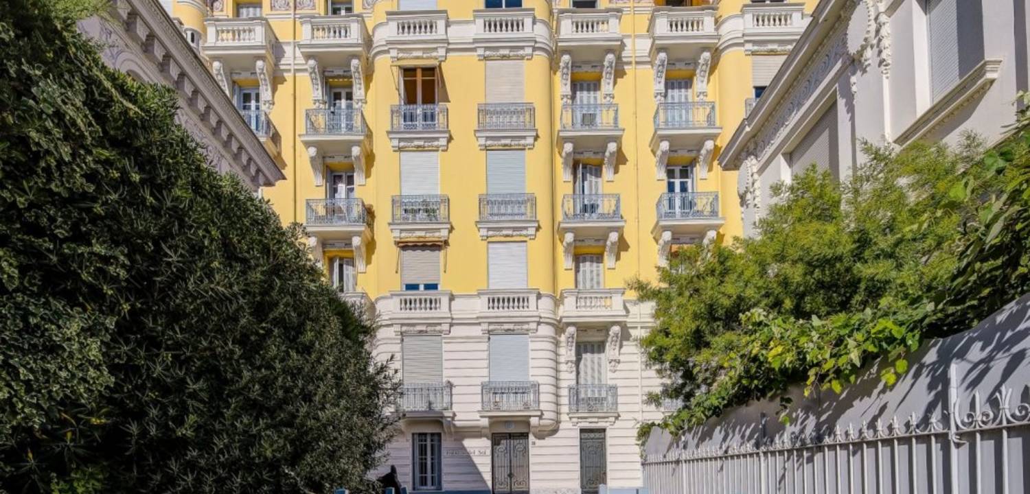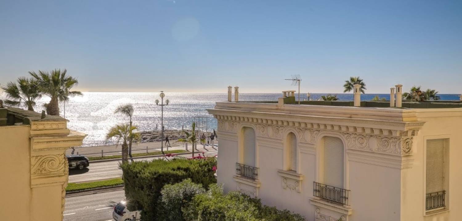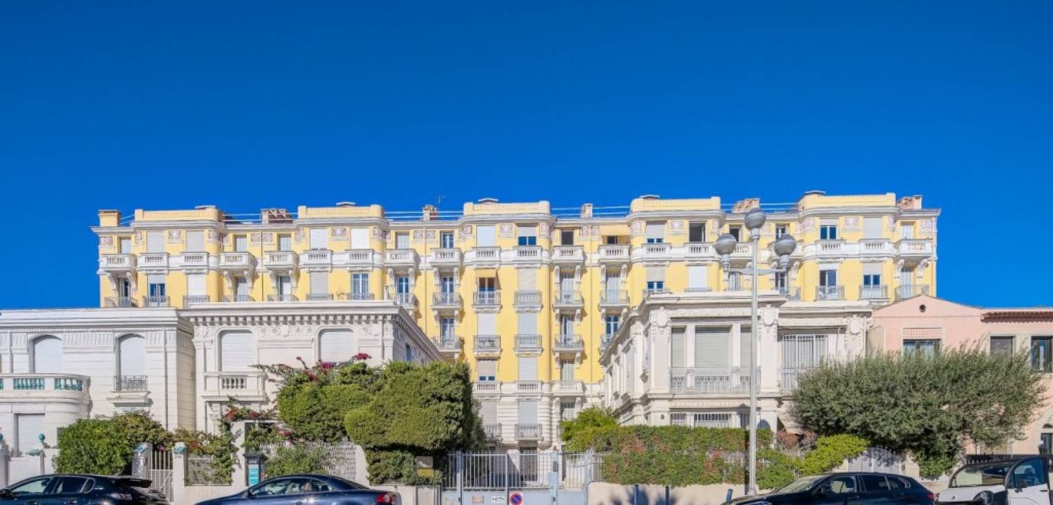 A vendre Promenade des Anglais, découvrez ce très bel appartement 3 pièces traversant, situé au 2e étage avec ascenseur d'un immeuble de style Belle Époque récemment ravalé et dont la toiture a également été refaite