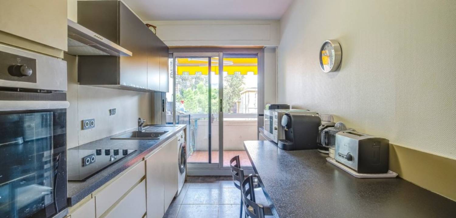 Il est composé d'une cuisine indépendante et d'un salon donnant sur la terrasse, grandes baies vitrées neuves, d'une salle d'eau , de 2 chambres donnant sur le parc de la copropriété au calme, W.C.indépendant, buanderie. La nature au plein de cœur de la ville. Proche de boulangeries, commerces, supermarchés ou supérettes (CARREFOUR MARKET NICE LE RAY, CASINO et HYPER U) pour faciliter votre quotidien. Vous êtes à quelques minutes de crèches, écoles maternelles, écoles primaires, collèges et établissements d'enseignement supérieur. Tout près on trouve : cafés ou bars et restaurants, coiffeur, kyne, dentiste, pharmacie... Pour faciliter vos déplacements, la station Le Ray (Ligne de tram) est à 120 mètres. Cave et garage privatif en sus au prix de 20 000€