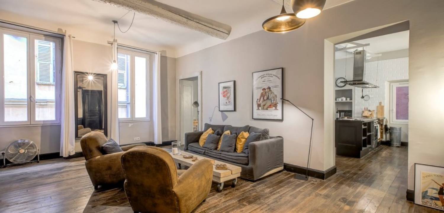 Situé au cœur du Vieux-Nice à côté du cours Saleya rue Barillerie et de la mer, ce superbe 3P de 85 m² exposé sud séduit par son charme de l'ancien et ses prestations modernes haut de gamme