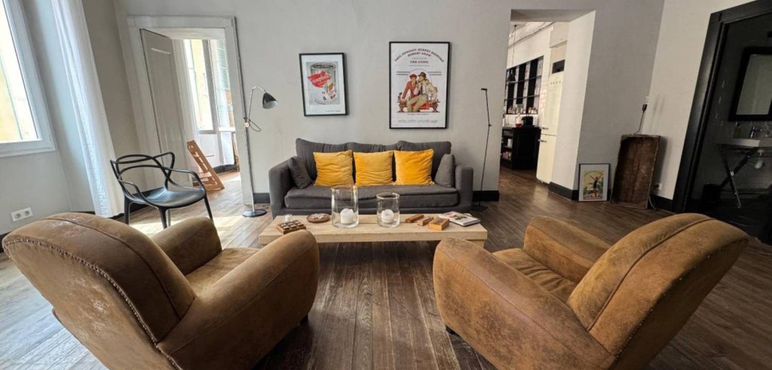 Parfaitement adapté à la location saisonnière, il offre une excellente rentabilité avec de faibles charges de copropriété. L'appartement se compose d'un vaste salon lumineux avec cheminée, sublimé par une belle hauteur sous plafond et un parquet en parfait état. La grande cuisine dinatoire, entièrement équipée, est idéale pour recevoir. Les chambres sont bien agencées dont une profite d'une petite terrasse rare dans le Vieux Nice. Prestations de qualité : • Double vitrage • Climatisation haut de gamme • Électroménager en parfait état • Porte blindée • Parties communes rénovées • Immeuble de caractère offrant une belle cage d'escaliers. Un bien de caractère, alliant authenticité et confort moderne, dans l'un des quartiers les plus recherchés de Nice.